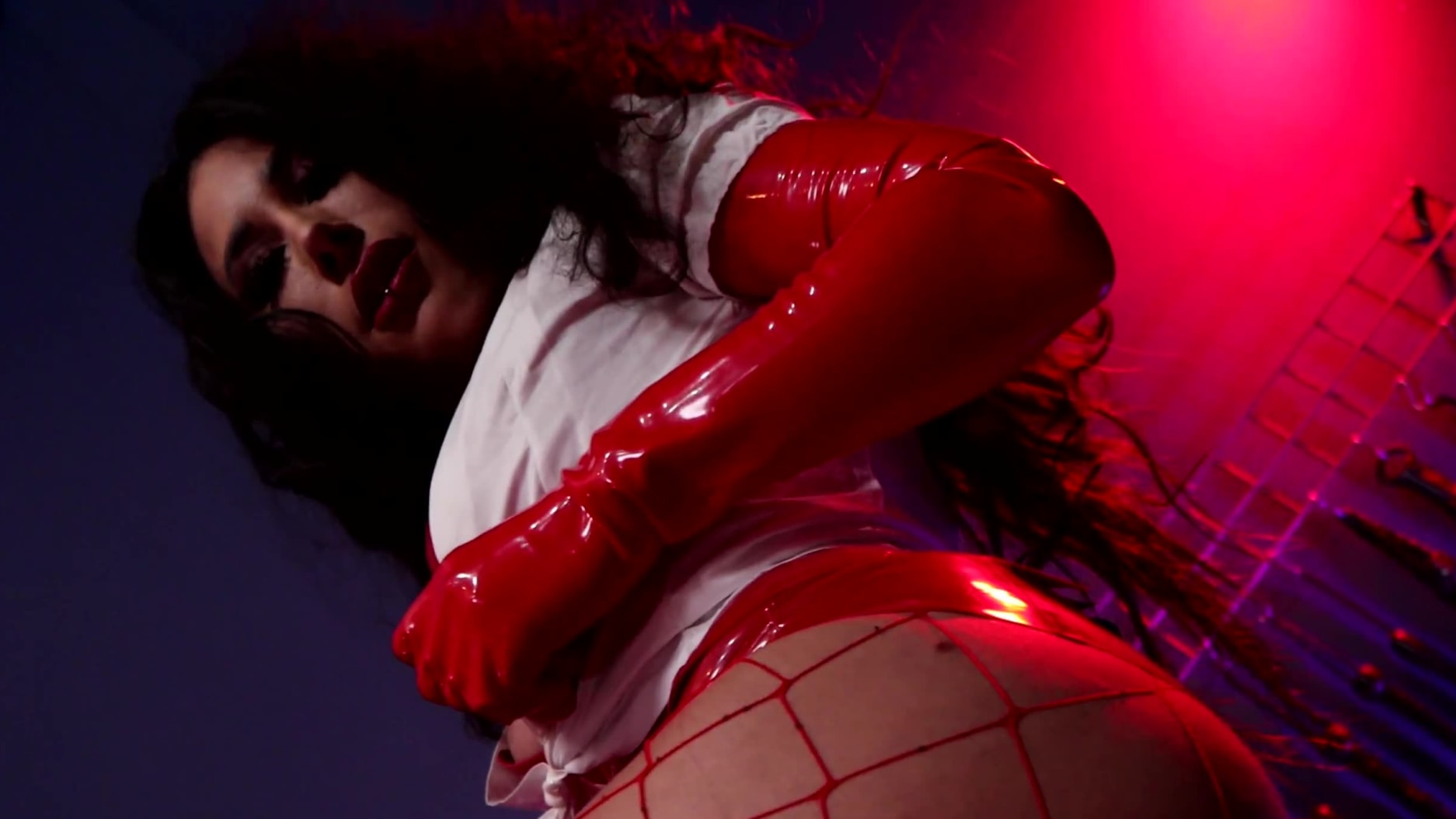 Goddess Tangent has an applicant to be a Service Top, in Her stable. Goddess requires Her slaves to also know how to take it - really take it, as bottoms. Goddess likes her slaves to be Stretchy and Flexible. Tangent puts him through a battery of tests. The testing starts with a large then larger butt plug up his ass, to loosen him up for the series of three large strap-on cocks to follow. Goddess Tangent plows Her oet balls deep, as She pile drives him with that big black cock, culminating with a finale, that almost has him screaming for mercy. Their latex gets pretty hot and sweaty during this ride. Slave passes his ordeal and is allowed to cum. Of course he has to eat it, as he is welcomed to the tribe.