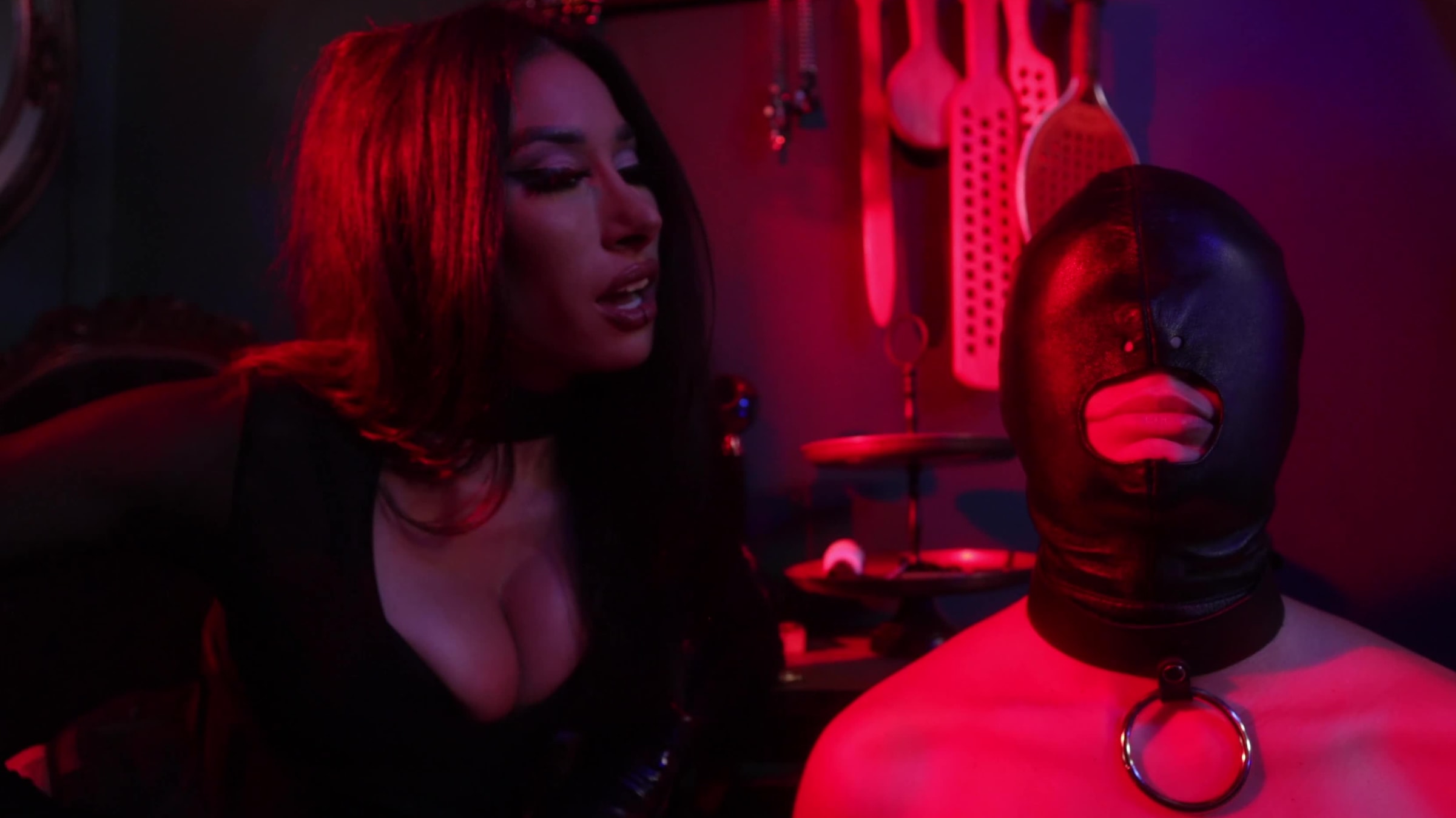 This video starts with Nadia Noel getting the harshest spanking of her life! The moans of pain are exquisite. The Nadia tries to squirm away but the shackles holds her tight. Then she is chained to the roof and out comes the leather \u0026 paddle! Nadia cries at one point and begs for mercy! Nadia's ass is destroyed. When Nadia is unshackled and thinks it's over, it's just beginning! CBT, more spanking, strap-on sucking, and then topped off with the Goddess fucking Nadia... Hard!! This is just a great day for Goddess Tangent!